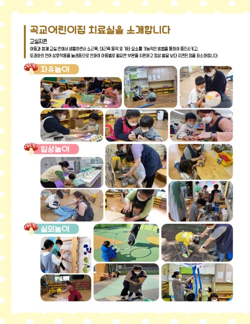 교실지원 아동의 신체적 발달 및 보호자와 아동 간의 상호작용을 촉진할 수 있는 프로그램입니다.